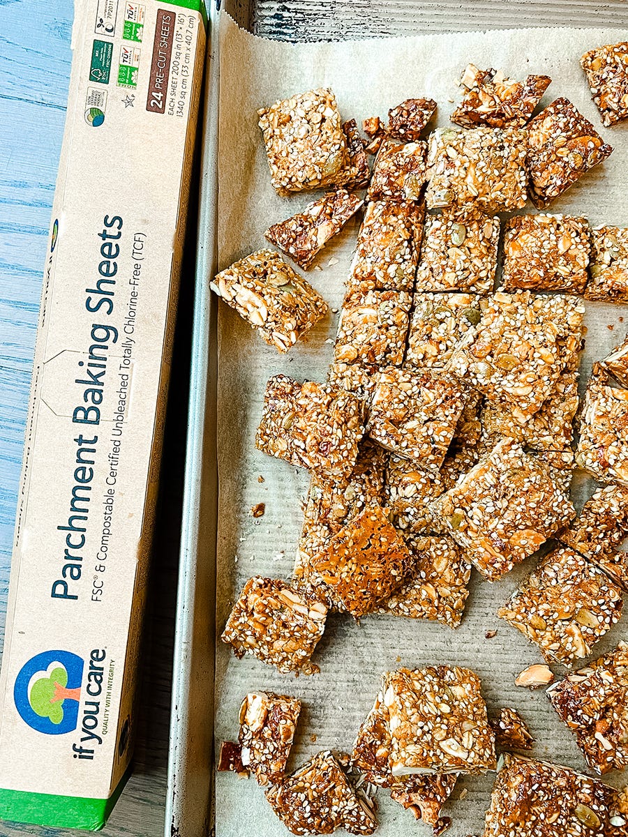 Slice them into bars, then wrap them individually in parchment paper. Freeze in a plastic bag!
