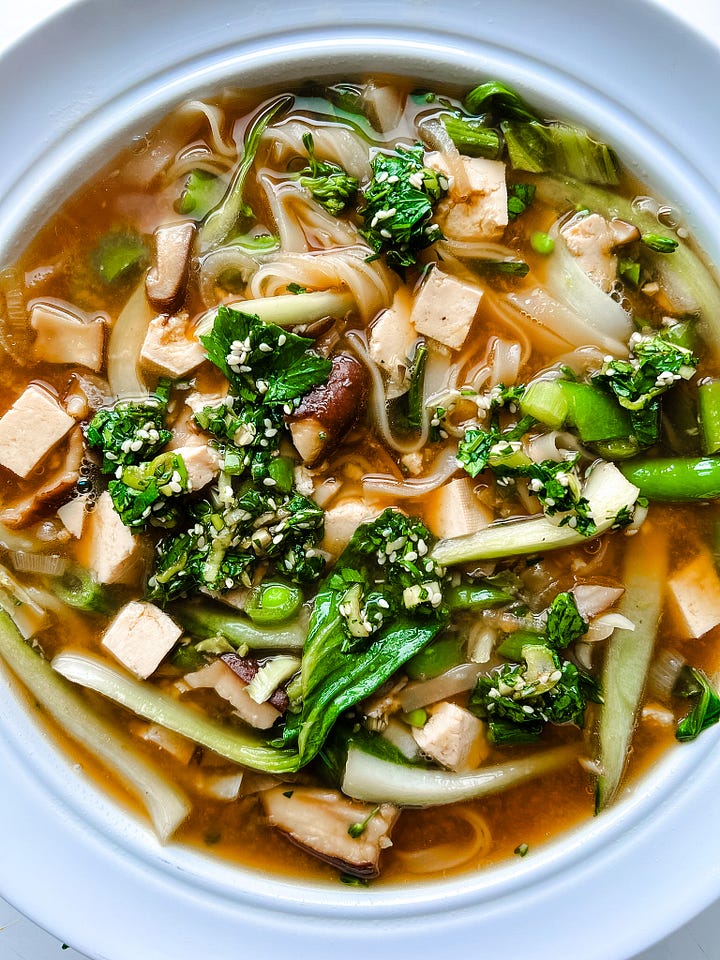 Pretend you’re at a restaurant and blend up nutrient-packed carrot & ginger dressing while the soup cooks. It’s a delicious, light way to start the meal before diving into a bowl of noodles (and without needing a reservation).