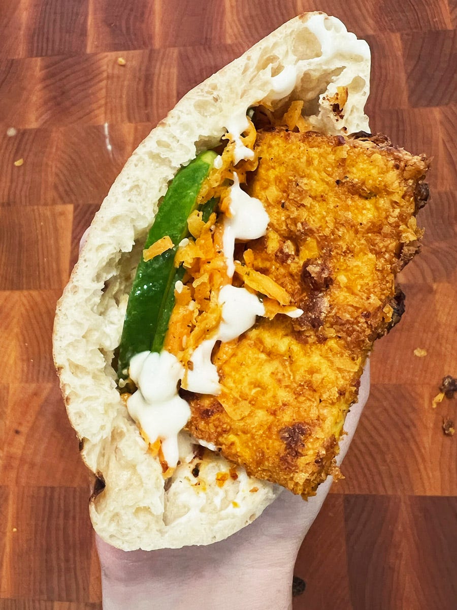 Dinner: Crispy Tofu with Carrot Salad in Pitas or Tortillas