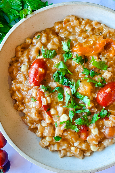 If you’ve been to the market (or even the grocery store) recently, I’m sure you’ve seen piles of gorgeous summer corn and juicy tomatoes. I could make a corn salad every day, but sometimes I need to mix things up a bit. This one-pot pasta lets whatever pasta shape you choose absorb all the delicious summer flavors while you sit back and relax.