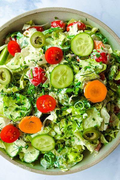 Once you learn how to make crispy chicken, you can use it for just about anything. Adi frequently makes chicken schnitzel with a perfectly crunchy exterior and tender chicken, which is just as good eaten on top of this gorgeous salad as it is sneaking a bite over the stove. We normally pan-fry the schnitzel, but I’ve included instructions for airfrying, too—it’s a bit more hands-off, which is always a win on a weeknight. It’s also great with Green Goddess.