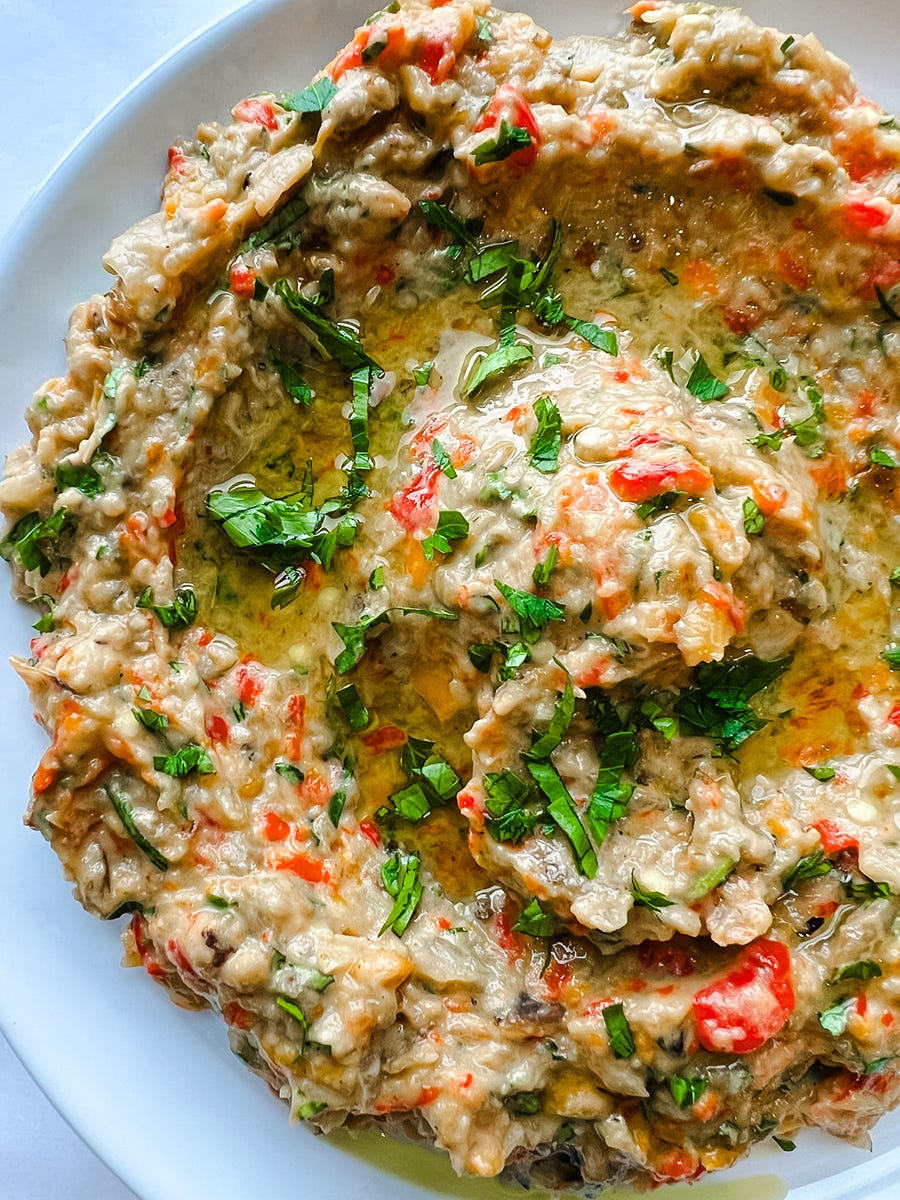 Adi taught me this! When you’re buying an eggplant, you want the lightest one you can find—it means there are fewer seeds. Pick up two similar-sized eggplants and weigh with your hands, then choose the lighter option.