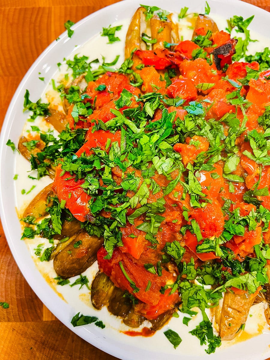Eggplants with Stewed Tomatoes & Peppers