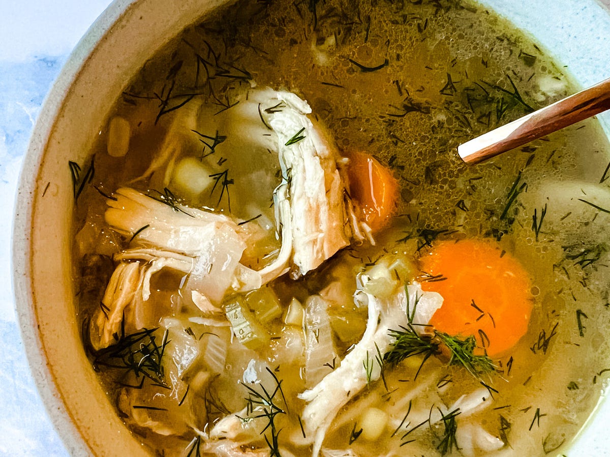 You can use whatever leftovers you have for this soup—dark meat or white meat, turkey or chicken. It’s a great way to clean out your fridge and start fresh in the new year! If you have potatoes, add those; if you have leftover rice, add that. You can use any onion or shallot you have. Add extra garlic or ginger to change the flavor profile to be something you love, then cozy up and enjoy. Here are a few of my favorite soups if you’re craving more.