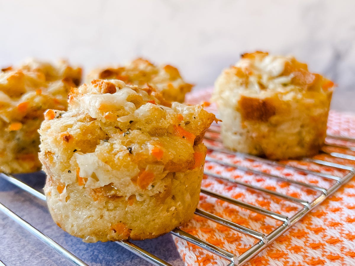 Turn yesterday’s stuffing into today’s muffins. Cheese is optional, but will give you a great cheese pull.