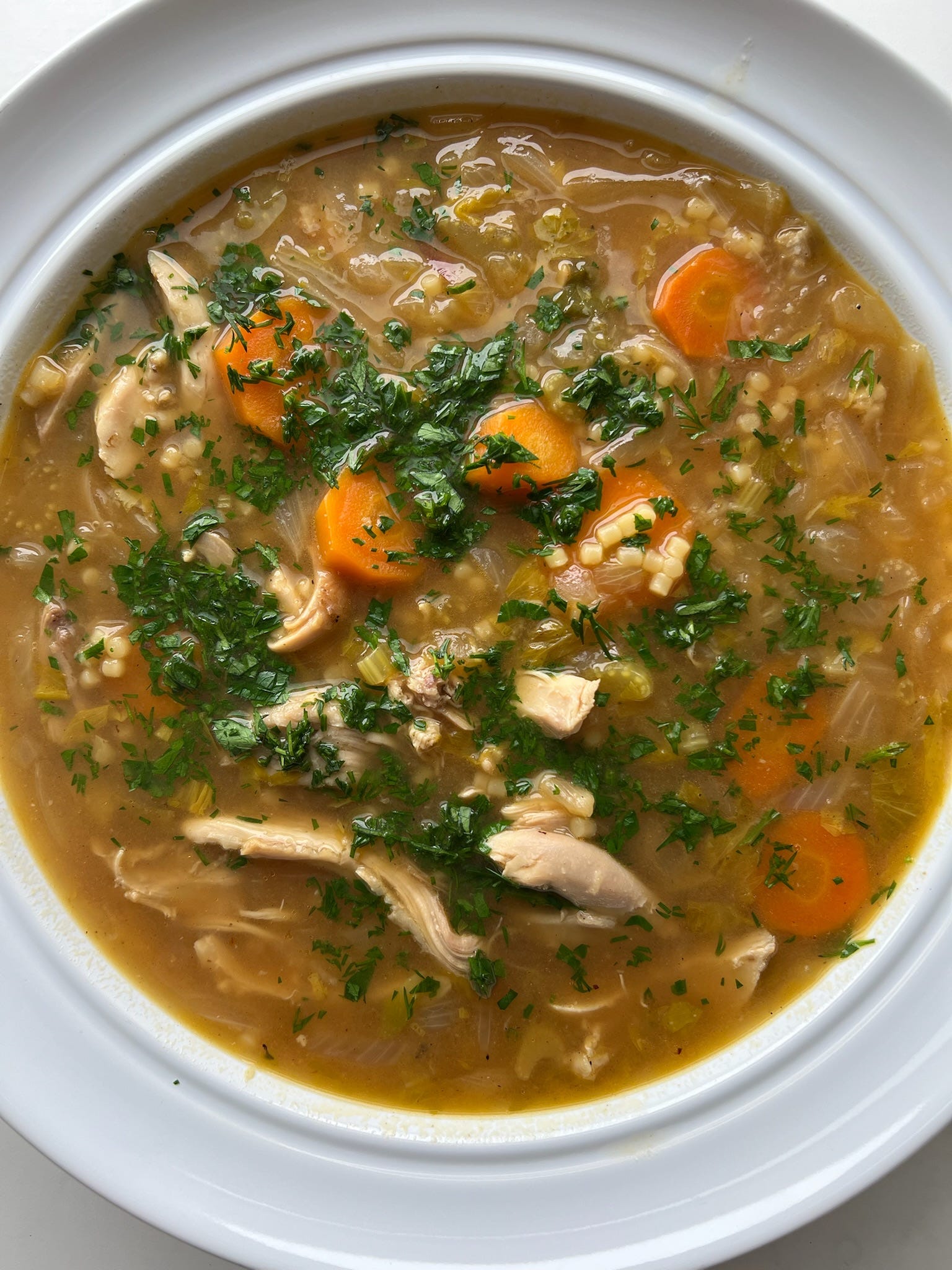 Fresh ginger & turmeric - I add extra turmeric and ginger to soup during cold season to ward off any bugs. Blend a 1” knob of fresh turmeric and fresh ginger with 1 cup of broth, then return it to the pot. Instant cold remedy.