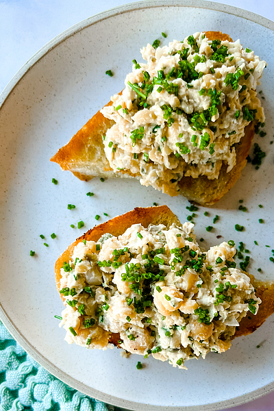 This salad is a great picnic, boat, or beach meal. It’s easy to pack as a sandwich with veggies or pop in a deli container to eat with crackers and cucumber slices. And with canned chickpeas, it comes together so quickly in one bowl. No heat, no mess—your dream meal. It’s also hearty enough to last a few days in the fridge, so it’s a great work lunch, too.