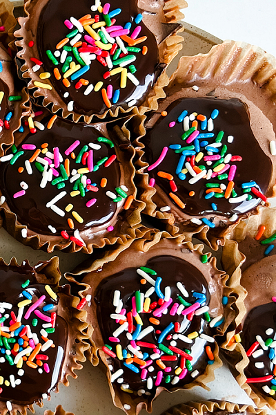 If you like icebox cakes, look no further for your favorite dessert. These individual treats are perfect to make ahead for birthday parties or backyard hangs when the weather is hot. I used rainbow sprinkles, but switch up the colors for a fun July 4th dessert. The Oreo base and hot fudge topping will have everyone drooling for more. Make extras!!