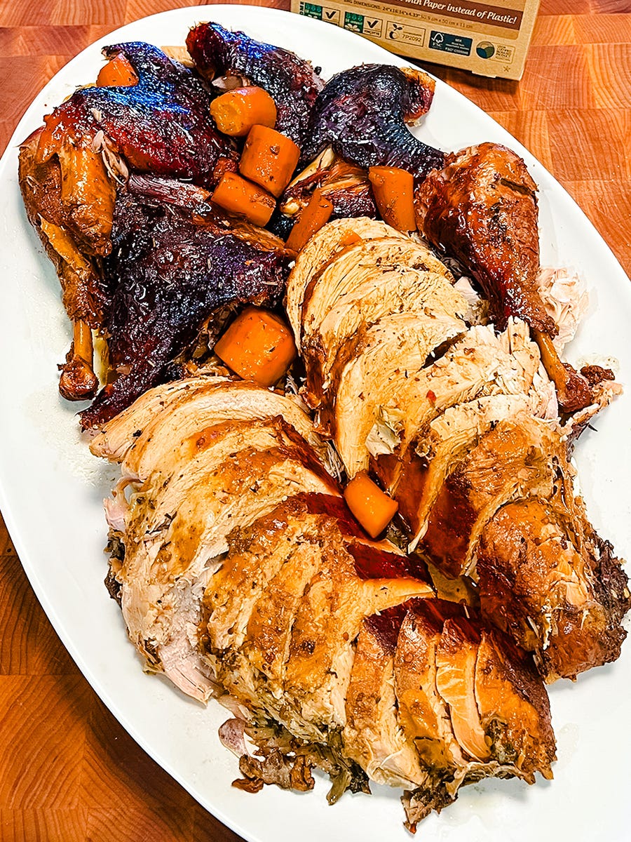I donât like turkey. Theyâre kind of dry all the time, right? But I DO love when birds are so tender that the meat falls off the bones. If youâre making turkey or chicken for Thanksgiving (or Friendsgiving), this is the recipe you need for a juicy, tender centerpiece. Itâs packed with flavor, and using a roasting bag locks the moisture in instead of drying out. I liked the marinade so much that I decided to riff on it with a chicken a week later to even better results. Both recipes are in this weekâs PDF!