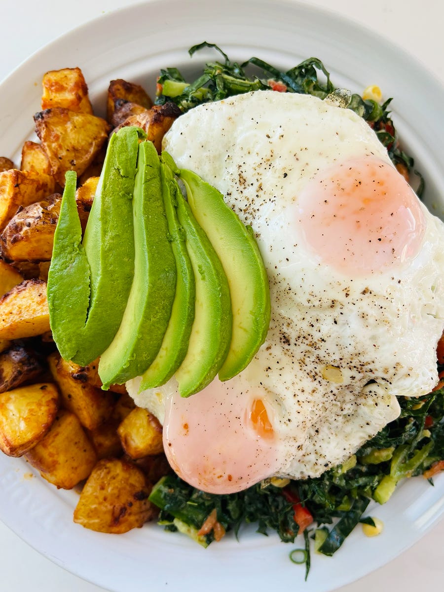 This is the quintessential breakfast salad that I would happily eat every single day. It’s filling in the best way! And save the garlicky potato recipe for a go-to dinner side—they made my kitchen smell so good the whole time they were cooking.