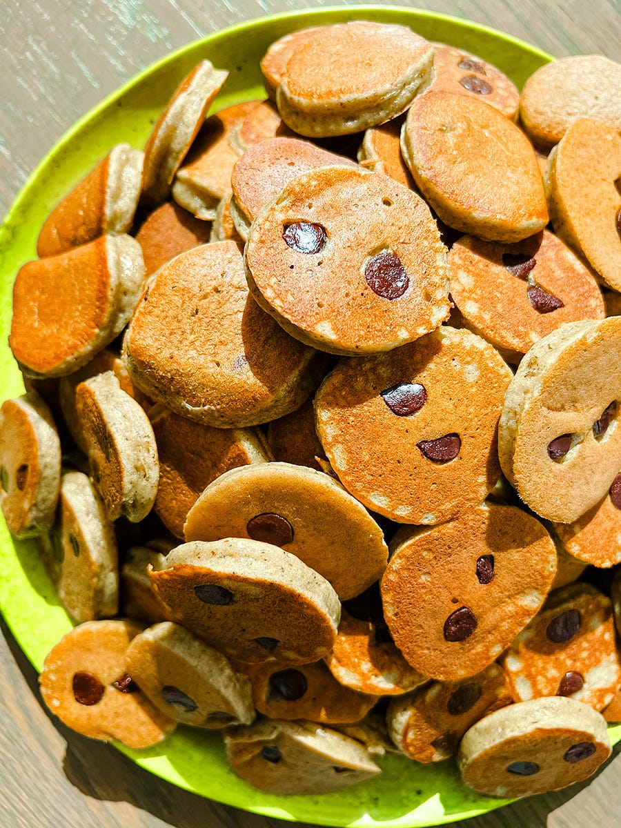 The perfect weekend pancakes (our tradition), packed with protein, flax, hemp seeds, and more. Make extras to add to lunchboxes!