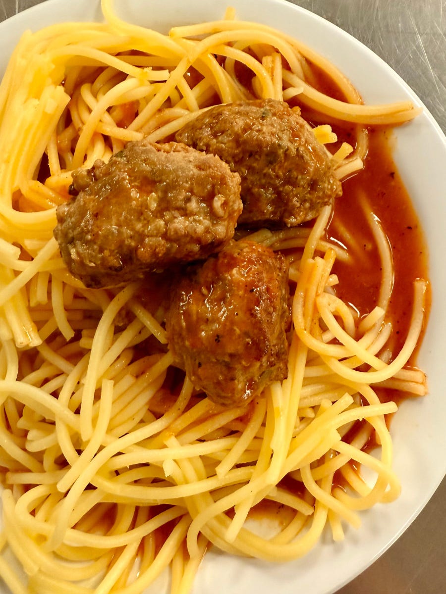 For the first class, we made a big salad and grilled chicken, and with close to 20 kids it was chaos. Then we made cookies for the holidays. And yesterday, we made the turkey meatball recipe I’m sharing below. They’re lighter than traditional meatballs and packed with veggies, perfect for a weeknight dinner. I add broth to the sauce for extra protein; for a thicker sauce leave it out.