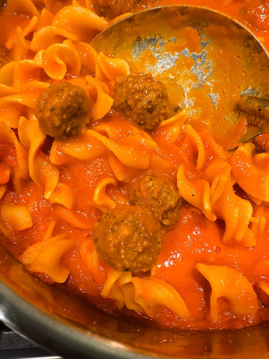 Frozen foods are essential for weeknight meals. We always have meatballs stashed away. Make it an easy one-pot meal by tossing a 12 oz. bag of frozen meatballs in a pot with 2 cups of dried pasta, a 28 oz. jar of Rao’s marinara, and 2 cups of bone broth (add more broth or water as needed to fully cover the pasta). Bake covered at 300°F for about an hour, until the noodles are tender.