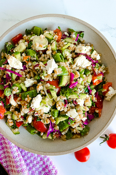 Make this for the barbecue, then make it again on Sunday to cover lunches all week long. This grain salad is one of my favorites—it’s covered in miso vinaigrette (IYKYK) and packed with lots of veggies. The salmon rounds it out and adds a nice lean protein (which can so often be missing from barbecues) that you can make in the oven or on the grill.