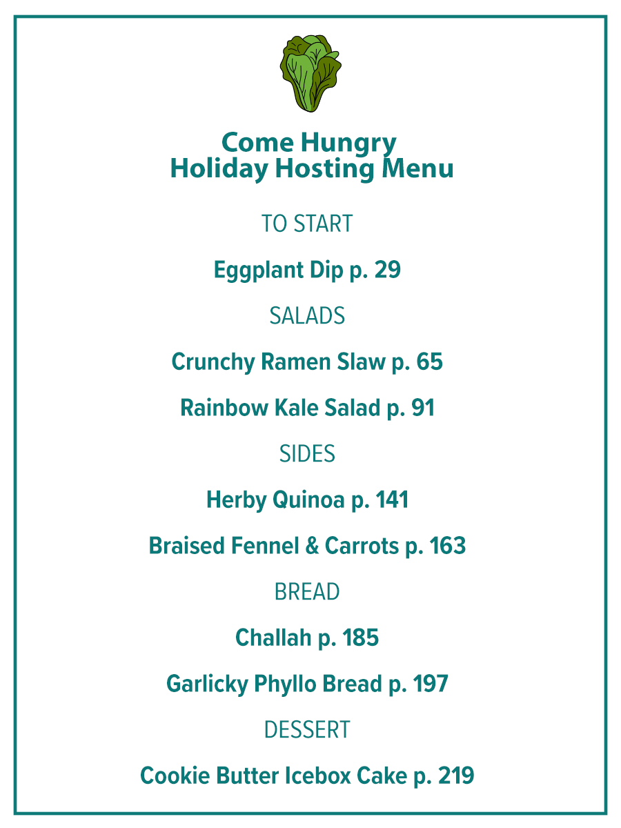 It has been so fun seeing you all make recipes from Come Hungry this year. If you don’t have your copy yet, add it to your wish list—it’s only $15 right now on Amazon. A few weeks ago, I saw a Friendsgiving menu inspired by the book (so fun!), so today I’m sharing the perfect holiday hosting menu with recipes from the book to leave everyone at the table happy and full.