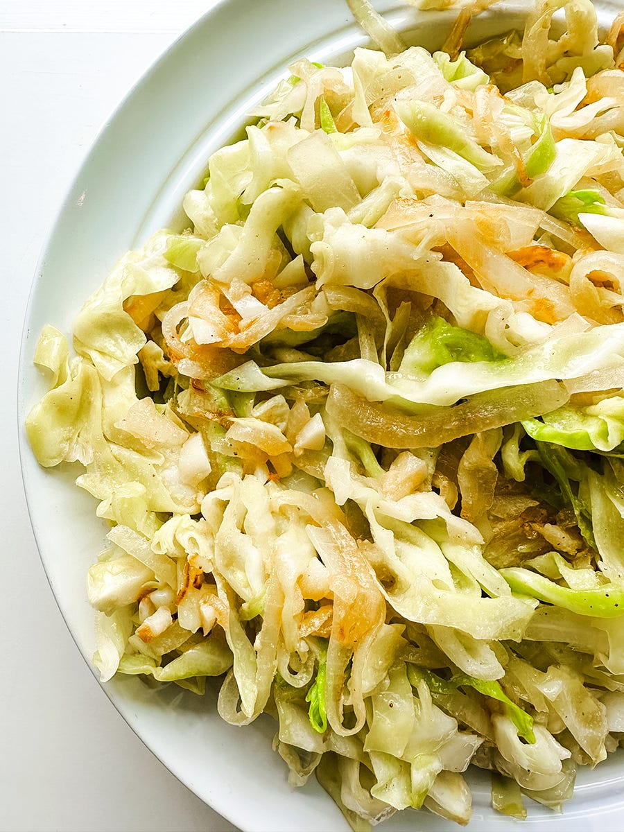 Cozy, warm twirls of cabbage that you can serve as a side and twirl like pasta.